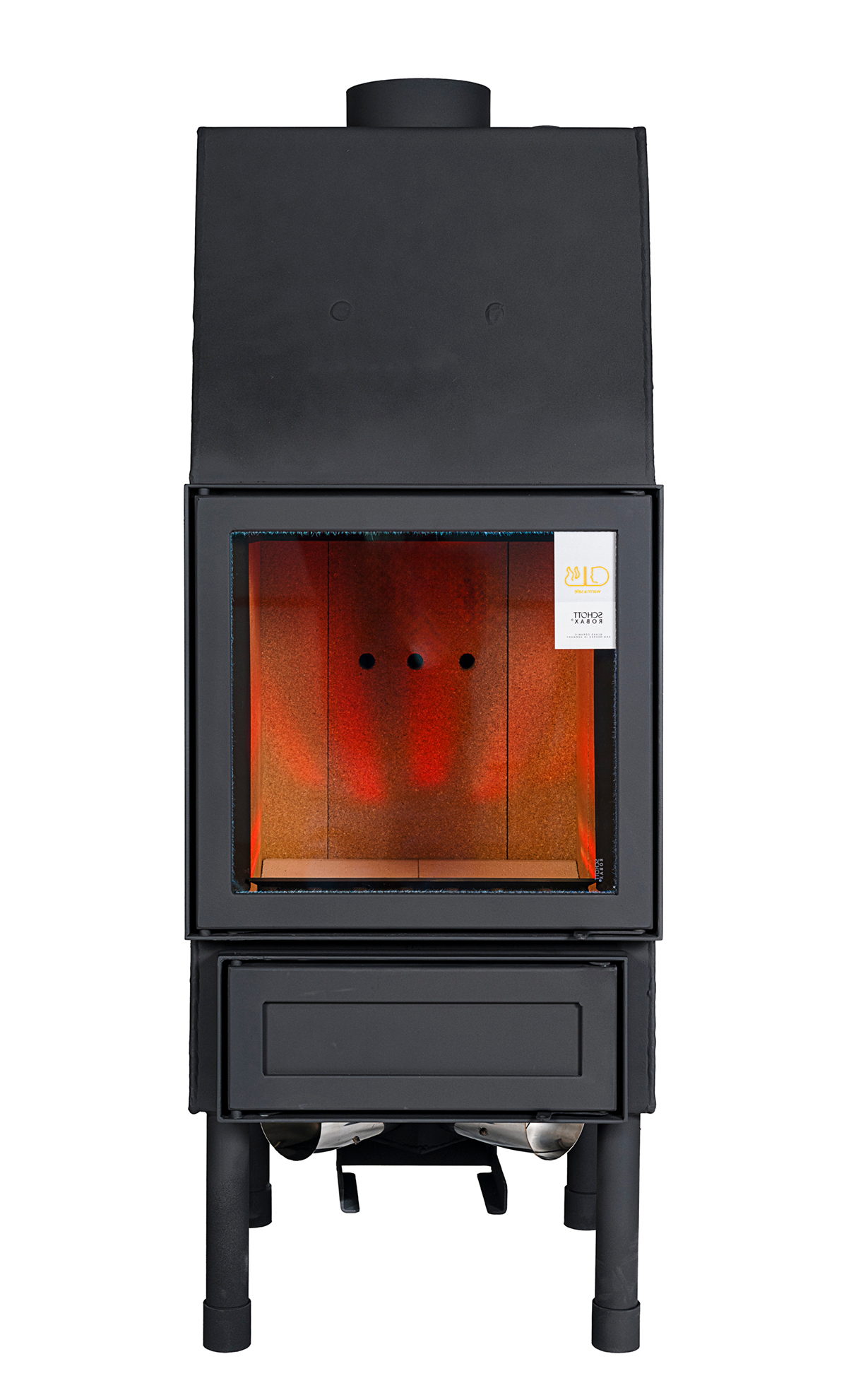 Wysokowydajna wymiana ciepła – poprzez zabudowany wymiennik ze stali nierdzewnej: zabezpiecza instalację przed przegrzaniem – separuje ciśnienia, umożliwia pracę w układzie zamkniętym, zwiększa żywotność kominka poprzez równomierne obciążenie płaszcza wodnego, umożliwia bezpieczną integrację z innymi źródłami ciepła, .
